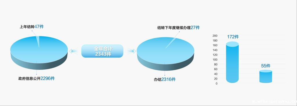 2024年,全市共收到政府信息公开申请2343件(含上年结转申请47件),办结2316件(予以公开867件、部分公开412件、不予公开82件、无法提供881件、不予处理52件、其他处理22件),结转下年度继续办理27件。因依申请公开引发行政复议172件、行政诉讼55件。