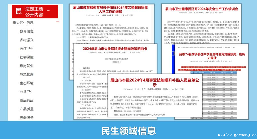 一是建强政府网站信息公开主阵地。围绕省、市重大决策部署,及时通过政府网站发布重要政策文件、政府会议、政府工作报告等信息5.2万余条,聚焦教育、医疗、就业、社保等群众关心的热点,公开招生政策、医疗门诊服务、就业岗位信息、社保待遇调整等内容,累计发布民生领域信息1.06万余条。定期公布空气质量、水环境质量监测数据,以及环保执法检查情况等,发布相关信息618条。