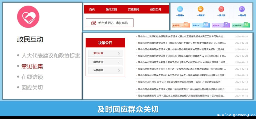 四是及时回应群众关切。畅通政府网站“领导信箱”“回应关切”等政民互动渠道,组织开展政策意见征集98期、收到意见建议171条,办理群众留言698条。