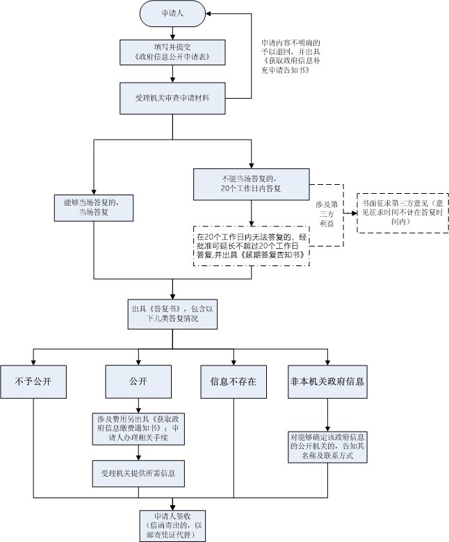 (2024年9月修订) 为了更好地提供政府信息公开服务,方便公众快速、准确地查找四川天府新区眉山管理委员会及其部门依法公开的政府信息,根据《中华人民共和国政府信息公开条例》的规定,特编制本指南。 一、主动公开政府信息 (一)政府信息公开范围 四川天府新区眉山管理委员会及其部门依法公开的政府信息为非涉密信息,包括涉及公众利益调整、需要公众广泛知晓或者需要公众参与决策的政府信息,以及依照法律、法规、规章和国家有关规定应当主动公开的信息。 (二)政府信息公开方式 公众可通过雷竞技raybet官网入口最委市政府门户网站(m.wfox-germany.com)以及新闻发布会、报刊、广播、电视、微信公众号等方式了解政府信息公开的有关情况。 (三)公开时限 属于主动公开范围的政府信息,自该政府信息形成或者变更之日起20个工作日内予以公开。法律、法规另有规定的,从其规定。 二、依申请公开政府信息 除主动公开的政府信息外,公民、法人或者其他组织(以下统称申请人)可以向四川天府新区眉山管理委员会及其部门申请获取相关政府信息。 (一)申请方式 1.信函申请。在雷竞技raybet官网入口最委市政府门户网站(m.wfox-germany.com)下载申请表,填写完整后通过信函申请。 2.当面申请。申请人直接到四川天府新区眉山管理委员会及其部门提出申请。 3.网上申请。在雷竞技raybet官网入口最委市政府门户网站(m.wfox-germany.com)提交申请。 目前,四川天府新区眉山管理委员会及其部门受理申请人的当面申请、信函、网上申请,暂不受理通过电报、电话、短消息、传真、电子邮箱等方式提出的申请。申请人可以通过电话等方式咨询相应的服务业务。采用信函方式申请公开政府信息的,请在信封正面显著位置标注“政府信息公开申请”字样。 (二)受理流程
